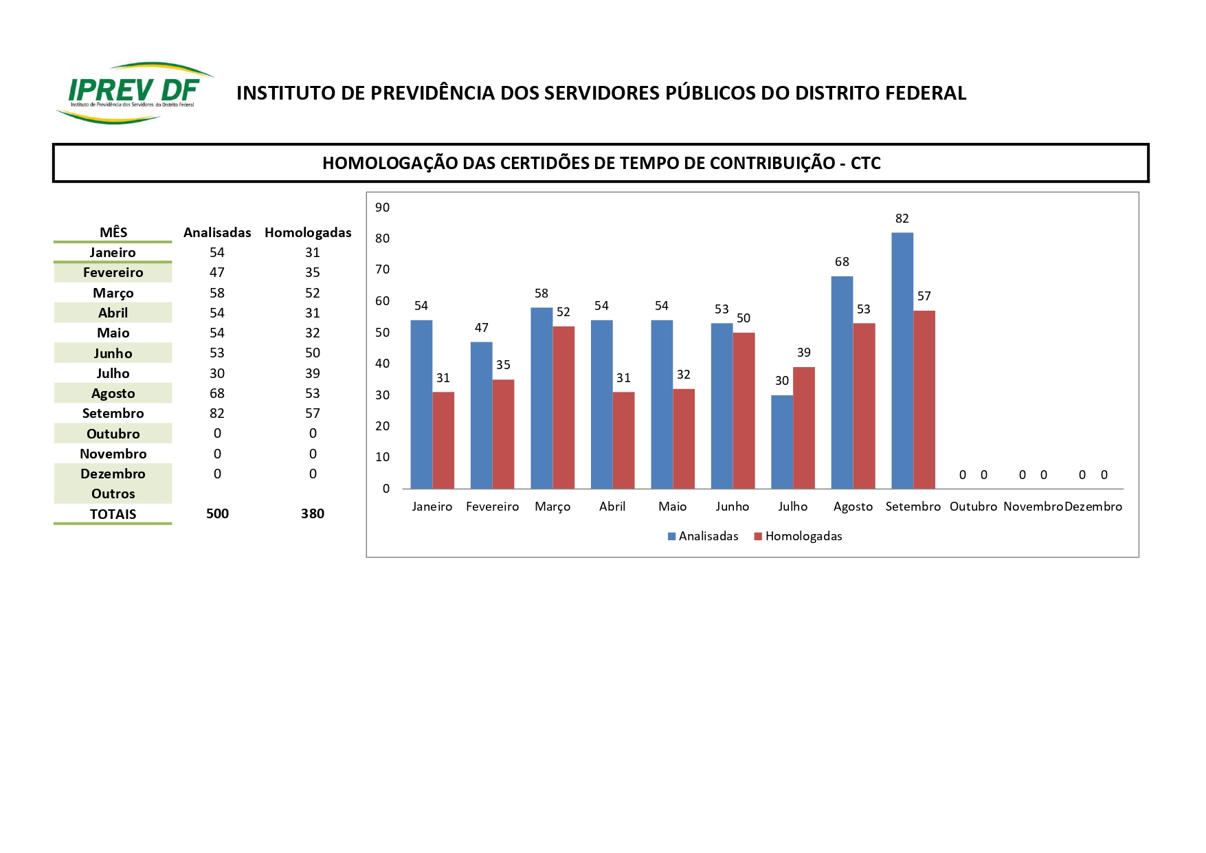 A Certidão de Tempo de Contribuição CTC, é um documento produzido pelos órgãos do DF e Homologado pelo IPREV-DF, para que ex-servidores do DF possam averbar os recolhimentos previdenciários para Regime Próprio de Previdência Social do DF e utilizar o seu tempo de contribuição no seu novo vínculo. Este Relatório acompanha a quantidade de CTC’s recebidas, após envio pelos órgãos, acompanha o tempo de análise pela área responsável e a quantidade de certidões homologadas.